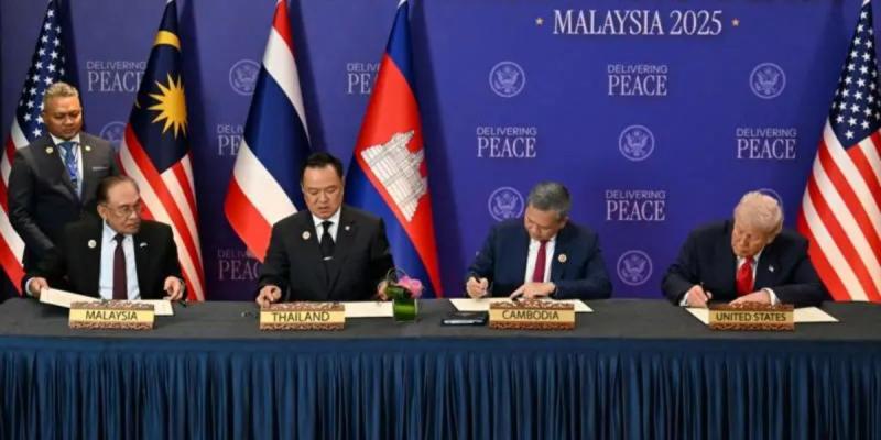 मलेसियामा उनको उपस्थितिमा थाइल्याण्ड र कम्बोडियाले आफ्नो पारस्परिक सीमा विवादमा ʻशान्ति सम्झौताʼमा हस्ताक्षर गरेका छन्।