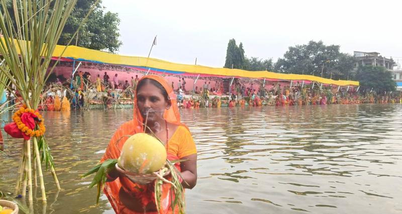 कार्तिक शुक्ल चतुर्थीदेखि सप्तमीसम्म मनाइने सूर्यदेवको आराधना, उपासना र पूजाको पर्व अन्तर्गत सोमबार साँझ अस्ताउँदो सूर्यलाई पूजाआराधना गरी अर्घ दिइएको हो।