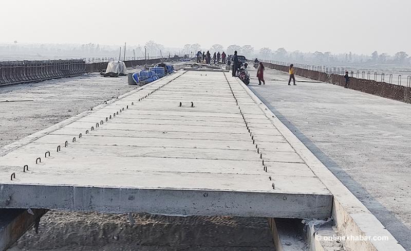 निर्माणाधीन चार लेनको उक्त पक्की पुलको ९५ प्रतिशत काम सम्पन्न भए पनि एक वर्ष बितिसक्दा बाँकी कामले पूर्णता पाएको छैन ।