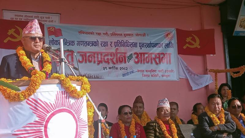 लोकतान्त्रिक गणतन्त्रको रक्षा र प्रतिनिधि सभा पुनर्स्थापनाका लागि एमाले धनकुटाले आयोजना गरेको बृहत् जनप्रदर्शन तथा आमसभामा उनले सरकार राष्ट्रलाई असफल बनाउने गतिविधिमा लागेको दाबी गरे।
