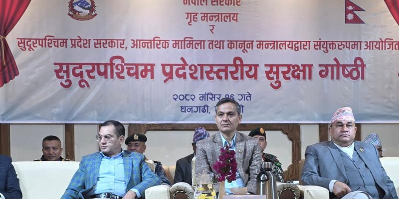 गृह मन्त्रालय र सुदूरपश्चिम प्रदेशको आन्तरिक मामिला तथा कानुन मन्त्रालयको संयुक्त आयोजनामा धनगढीमा मंगलबार सुरू भएको सुदूरपश्चिम प्रदेश स्तरीय सुरक्षा गोष्ठीको उद्दघाटन गर्दै मन्त्री अर्यालले यस्तो बताएका हुन्।
