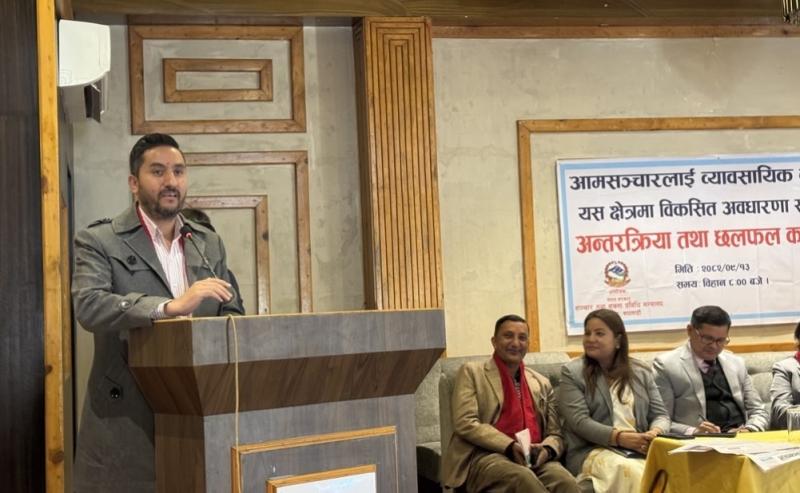 मन्त्रालयको आयोजनामा आइतबार पोखरामा भएको 'आमसञ्चारलाई व्यावसायिक बनाउन यस क्षेत्रमा विकसित अवधारणा' सम्बन्धी अन्तरक्रिया तथा छलफल कार्यक्रममा बोल्दै उनले चुनावमार्फत मुलुक विकास र समृद्धिको गन्तव्यमा अघि बढेको बताए ।