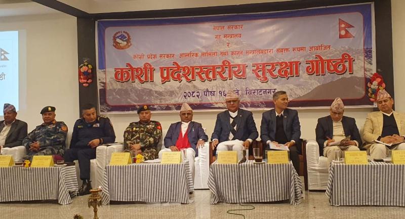 गृह सचिव राजकुमार श्रेष्ठको अध्यक्षतामा सम्पन्न गोष्ठीमा गृहमन्त्री अर्याल प्रमुख अतिथि थिए। कार्यक्रममा कोशी प्रदेशका मुख्यमन्त्री कार्की, आन्तरिक मामिला तथा कानुनमन्त्री भण्डारी, कोशी प्रदेशका प्रमुख सचिव राजेन्द्रकुमार पौडेल, प्रदेश सचिव नारायणप्रसाद रिसाल, नेपाली सेनाका बलाधिकृत रथी प्रदीपजंग केसी, पूर्वी पृतना हेडक्वार्टरका पृतनापति उपरथी गौरवकुमार केसी, नेपाल प्रहरीका महानिरीक्षक दानबहादुर कार्की, सशस्त्र प्रहरी बलका महानिरीक्षक राजु अर्याल तथा राष्ट्रिय अनुसन्धान विभागका मुख्य अनुसन्धान निर्देशक टेकेन्द्र कार्कीसहित उच्चस्तरीय सुरक्षा अधिकारीहरूको उपस्थिति रहेको थियो।