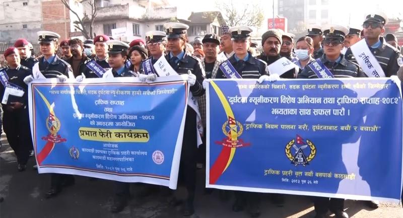 : काठमाडौं उपत्यका ट्राफिक प्रहरी कार्यालयले ट्राफिक सप्ताह तथा सवारी दुर्घटना न्यूनीकरण विशेष अभियान सुरु गरेको छ।