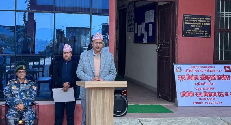: आसन्न प्रतिनिधिसभा निर्वाचनका लागि प्युठानमा मुख्य निर्वाचन अधिकृतको कार्यालय स्थापना गरिएको छ। शुक्रबार वन डिभिजन कार्यालय प्युठानमा मुख्य निर्वाचन अधिकृतको कार्यालय स्थापना गरिएको हो।