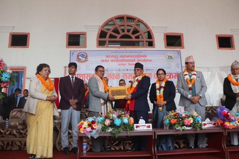 भरतपुर महानगरभित्रका पुल्चोक गोन्द्राङ ६ लेनको सडक, महानगरको ५३ करोडको प्रशासकीय भवन र रिङ रोडको एक भाग समयमै सकेपछि प्रशासकीय भवन उद्घाटन कार्यक्रममा पूर्वप्रधानमन्त्री पुष्पकमल दाहाल ʻप्रचण्डʼले सम्मान गरेका हुन्।