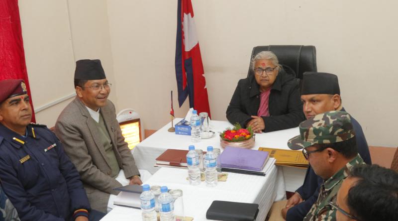 सो क्रममा ताप्लेजुङका मुख्य निर्वाचन अधिकृत एवं जिल्ला न्यायाधीश विकास श्रेष्ठ, प्रमुख जिल्ला अधिकारी शिवराज सेढाईँ, सुरक्षा अधिकारीलगाएतले निर्वाचन तयारी र सुरक्षा अवस्थाका बारेमा प्रधानमन्त्री कार्कीलाई जानकारी गराएका थिए ।