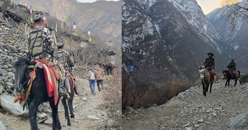 रारा राष्ट्रिय निकुञ्जको सुरक्षामा तैनाथ श्री हनुमानध्वज गुल्मले निर्वाचनको मिति नजिकिँदै जाँदा सम्भावित सुरक्षा चुनौतीलाई मध्यनजर गर्दै हिमाली बस्तीमा घोडा चढेर नियमित तथा विशेष गस्ती सञ्चालन गर्न थालेका छन ।