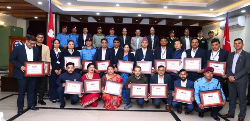 । गृहमन्त्री ओमप्रकाश अर्यालले प्रतिनिधिसभा सदस्य निर्वाचन सफलतापूर्वक सम्पन्न गर्न भूमिका निर्बाह गर्ने गृहमन्त्रालयका कर्मचारी र सुरक्षा निकायलाई सम्मान गरेका छन् । सोमबार मन्त्रालयमा आयोजित एक कार्यक्रमकाबीच मन्त्री अर्यालले कर्मचारी र सुरक्षा निकायलाई प्रसंशा–पत्रद्वारा सम्मान गरेका हुन् । मन्त्री अर्यालले गृह मन्त्रालयका सचिव राजकुमार श्रेष्ठ, रक्षा मन्त्रालयका सचिव केदारनाथ शर्मा, नेपाली सेनाका बलाध्यक्ष रथि प्रदिपजंग केसी, ...