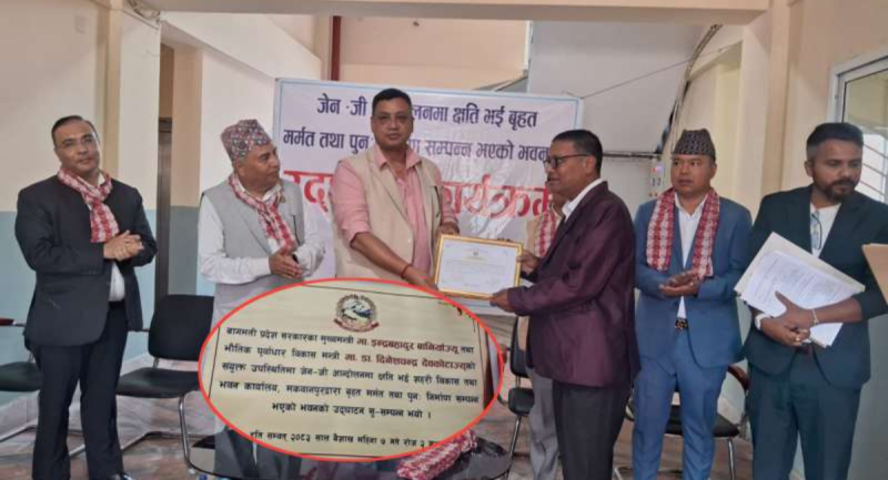 : बागमती प्रदेश सरकारले आन्दोलनका क्रममा क्षति पुगेका सरकारी संरचनाहरूको पुनर्निर्माण गरेको छ। गत भदौ २४ गतेको जेनजी आन्दोलनका क्रममा क्षतिग्रस्त बनेको हेटौंडा उपमहानगरपालिका-१, चौकिटोलस्थित पाँचतले भवनको सोमबार बीच मुख्यमन्त्री इन्द्र बहादुर बानियाँ र भौतिक पूर्वाधार विकास मन्त्री डा. दिनेशचन्द्र देवकोटाले संयुक्त रूपमा उद्घाटन गरे।
