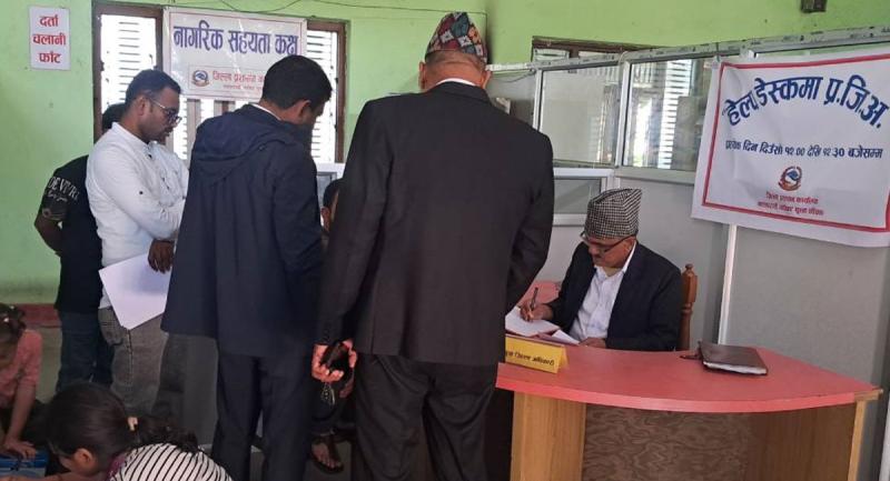 हालसालै आएका प्रजिअ लम्सालले हरेक दिनको १२ बजेदेखि साढे १२ बजे आधा घण्टा हेल्पडेस्कमा बसेर नागरिकका गुनासा सुन्ने अभ्यास सुरु गरेका हुन्। जिल्लामा प्रजिअको यो नयाँ अभ्यास हो।