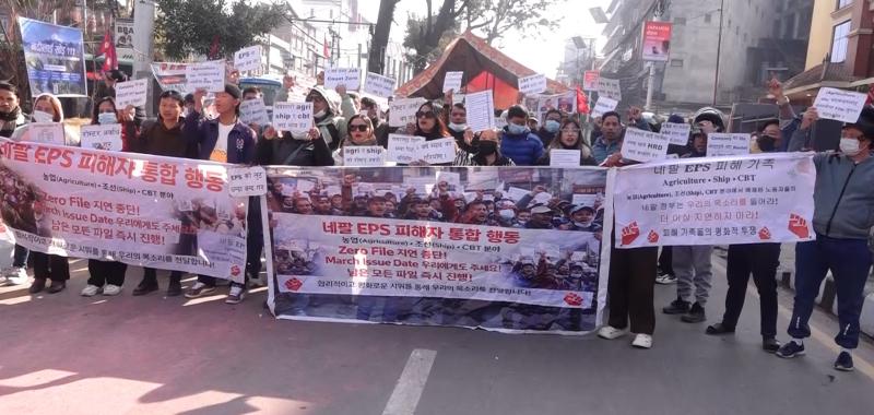 : रोजगार अनुमति प्रणाली(इपिएस)अन्तर्गत भाषा तथा सीप परीक्षा उत्तीर्ण भएर पनि लामो समयसम्म दक्षिण कोरिया जान नपाएको भन्दै युवाहरूले काठमाडौंमा प्रदर्शन गरेका छन् ।
