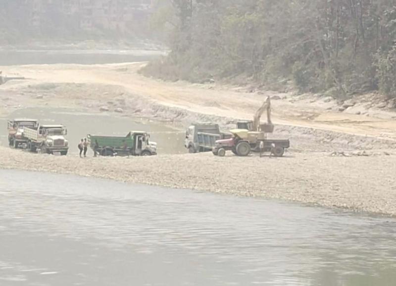 नेपाल सरकारको कानुन र सर्वोच्च अदालतको स्पष्ट आदेशअनुसार नदीको सतहमा मेशिन (डोजर वा स्काभेटर) प्रयोग गरी उत्खनन गर्नु पूर्णतः निषेध गरिएको छ । तर, सिद्धलेक गाउँपालिका–६ मा दिनदहाडै स्काभेटर प्रयोग गरी त्रिशूली नदीको बगर, ढुंगा, गिटी र बालुवा उत्खनन भइरहेको छ । यसलाई टिफर र ट्रयाक्टरमा लोड गर्ने दृश्य जो कोहीले सहजै देख्न सक्छ ।